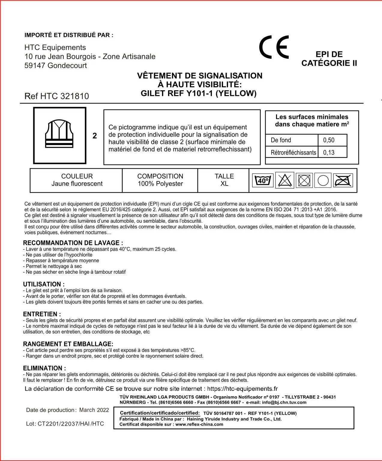Conformes à la norme EPI EN ISO 20471:2013 + A1:2016 – Classe 2 pour une visibilité optimale.